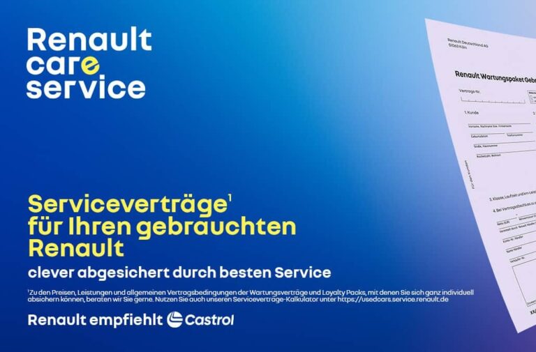 Serviceverträge1 für Ihren gebrauchten Renault. Das Renault Wartungspaket GW kann für alle Renault Fahrzeuge bis zum Alter von 60 Monaten (gerechnet ab Erstzulassung) abgeschlossen werden,