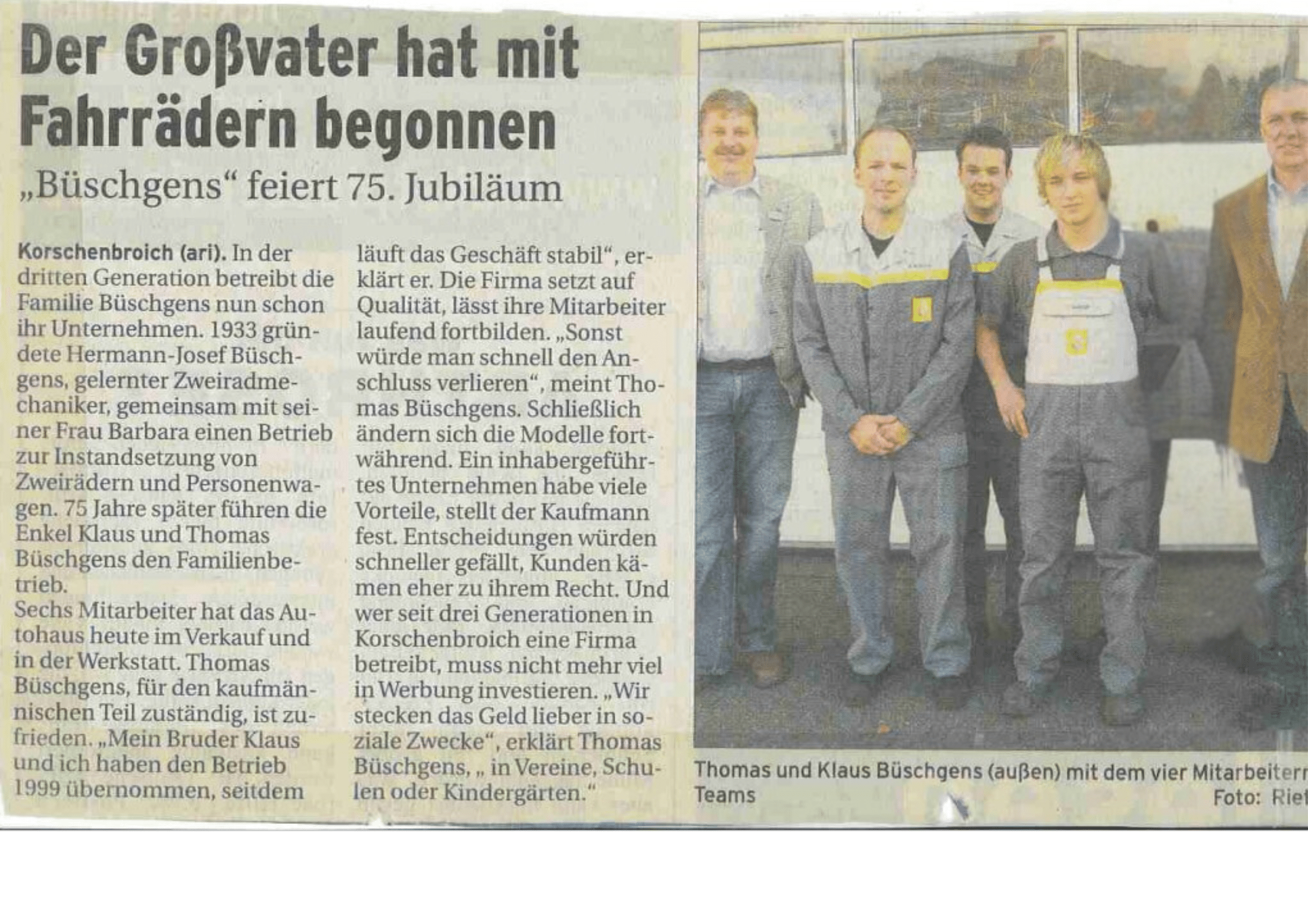 1999 fand die Staffelübergabe an die dritte Generation mit den Brüdern Klaus und Thomas Büschgens statt, die dann im Jahre 2008: 75 Jahre „Büschgens“ feierten!